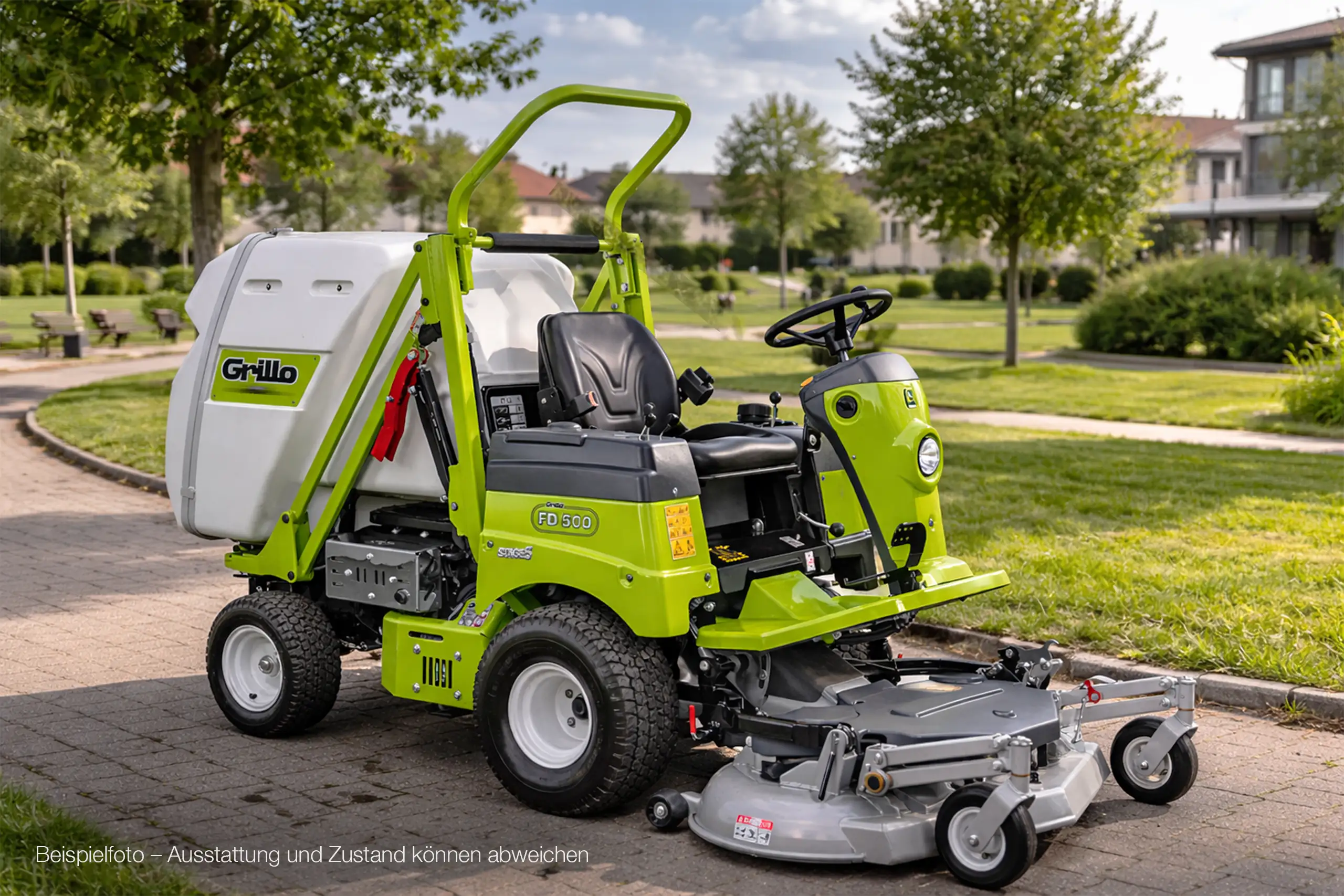 Der Grillo FD 500 ist ein hydrostatischer Aufsitzmäher mit besonders kleinem Wendekreis und einer Flächenleistung von bis zu ca. 7.500 m²/h. Damit eignet sich die Maschine ideal für den Einsatz in Parkanlagen, Wohnanlagen sowie im kommunalen und gewerblichen Bereich. Der Frontmäher ermöglicht präzises Arbeiten auch an schwer zugänglichen Stellen, ein großer Fangkorb mit Hochentleerung sorgt für effizientes Arbeiten mit minimalen Unterbrechungen.