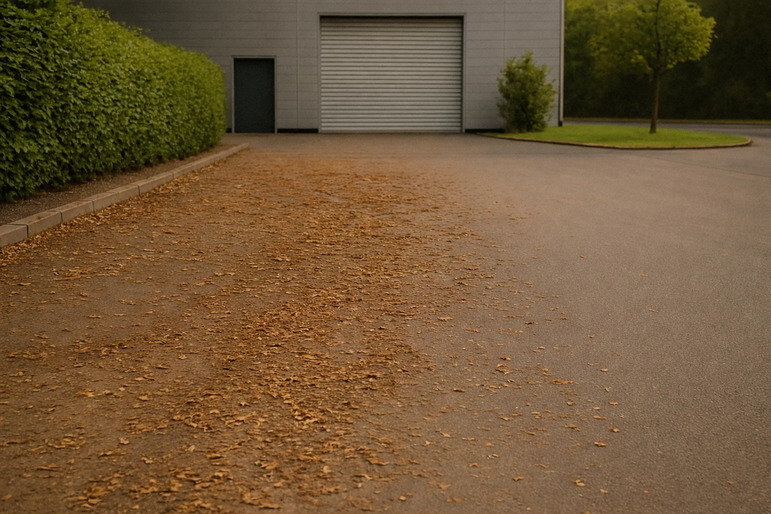 Die Maschinen entfernen Schmutz, Laub und Staub in einem Arbeitsgang, die Einfahrt erstrahlt nach dem gründlichen Kehrsaugen wieder.